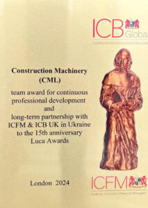 Congratulations on your well-deserved Honor: our long-standing partner Construction Machinery (CML) Kyiv, Eastern Europe, JCB’s head office is located in London, who since 2007 have been constantly improving the level of professional development of their team in the Dip ICFM UK programs, and will soon be training in a new qualifications for the Level Certified programs ICB UK.