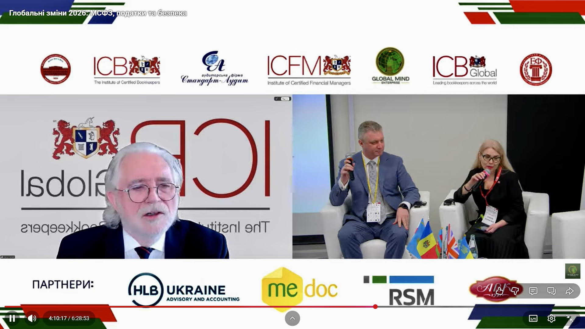 Я знаю, що багато хто з вас сьогодні спостерігає за нами. Незважаючи на виклики останніх кількох років, українська бухгалтерська спільнота залишається натхненням для всієї родини ICB. Ви не просто вели бухгалтерський облік та майстерно управляли фінансами, ви підтримували економічне серце вашої країни в найскладніших обставинах, які тільки можна уявити.