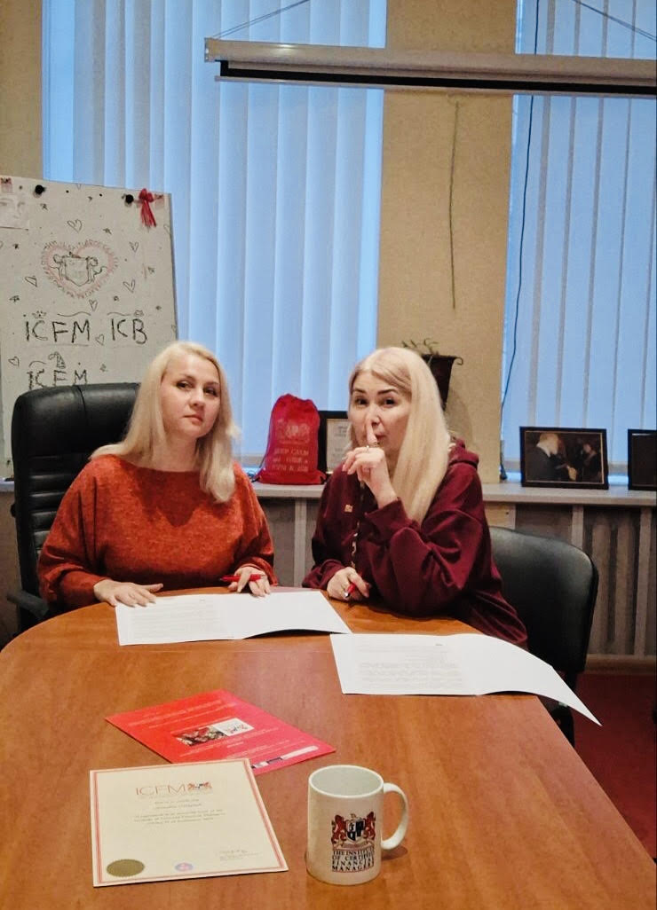 Ukraine, Kyiv. New Provider, Learning Center in Ukraine. A meeting and signing of an official cooperation agreement between CEO Ms. Helen Khorikova, Member of the ICB UK International Council, Companion ICB Global, Representative of ICFM UK & ICB UK and obtaining accreditation status within the framework of educational projects from the ICFM & ICB UK programs in Ukraine – new Provider Global MIND Enterprise, CEO Tetyana Pirog.